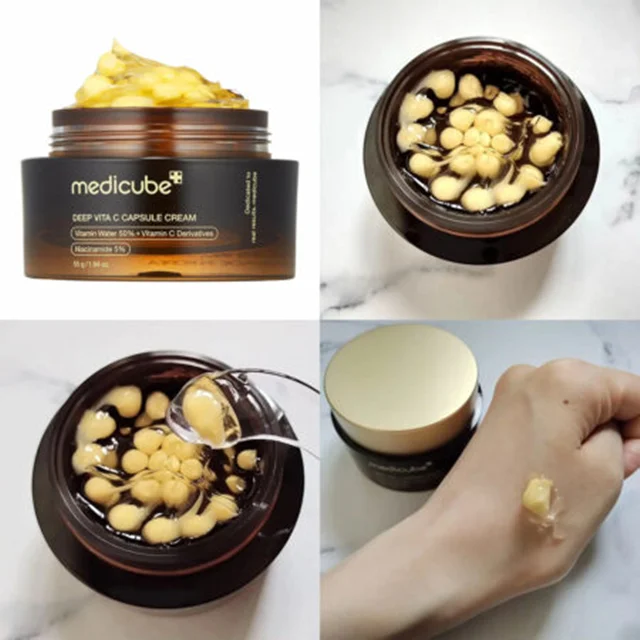کرم کپسولی ویتامین C برند Medi Cube با فرمولاسیون جدید و ترکیب ویتامین C و گلوتاتیون برای روشن شدن پوست، کاهش لک و جوانسازی فوقالعاده مناسب است. با جذب سریع و بافت ملایم باعث افزایش شفافیت و لطافت پوست میشود. مناسب انواع پوست، مخصوصاً برای افرادی که به دنبال شادابی، طراوت و کاهش تیرگی و لک هستند.